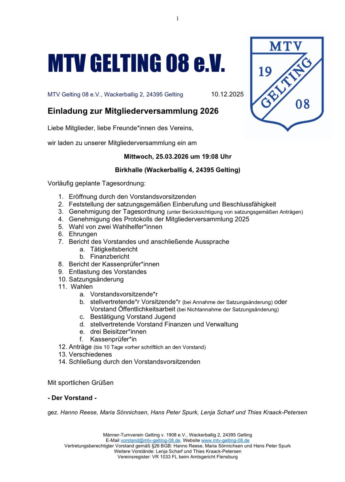 Liebe Mitglieder, Freunde, Sponsoren und Interessierte des MTV Gelting 08, auch das Jahr 2018 war für die Entwicklung des Vereins ein gutes Jahr.