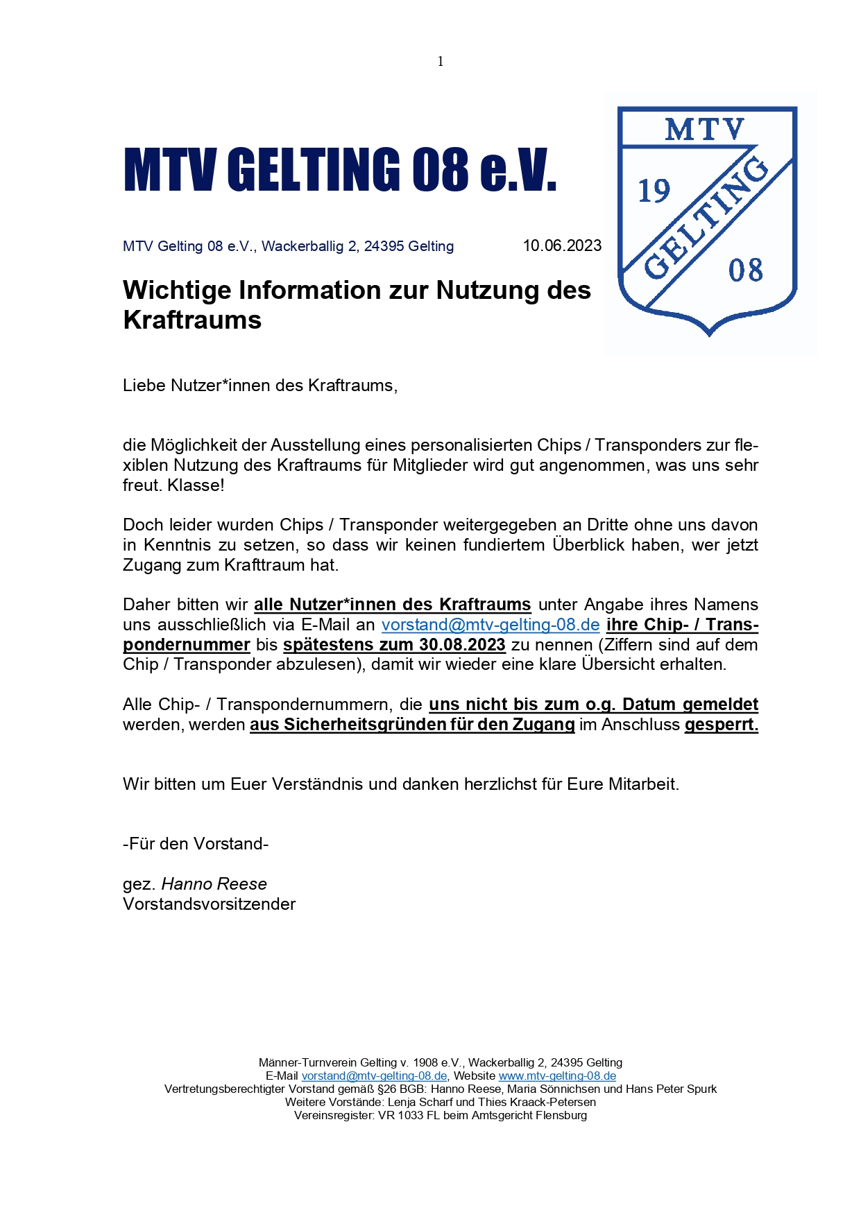 Liebe Mitglieder, Freunde, Sponsoren und Interessierte des MTV Gelting 08, auch das Jahr 2018 war für die Entwicklung des Vereins ein gutes Jahr.